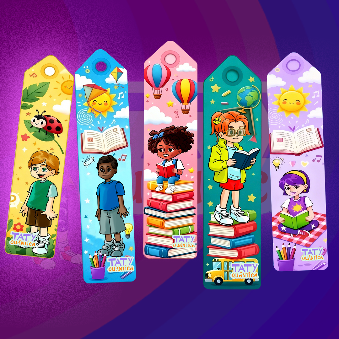 Um marca-página exclusivo com a identidade visual da Taty Quântica, para acompanhar a leitura dos livretos com ainda mais estilo.